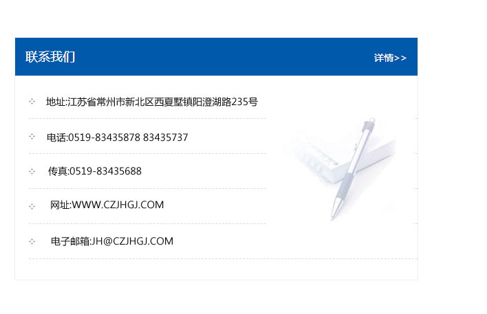 地址:常州市新北區友邦商務大廈1幢16、17層  電話:0519-85101652  傳真:0519-85112595  郵編:213022  網址:www.cz-jiayue_cn.liangyoutech.com  郵箱:xiajifengaa@163.com